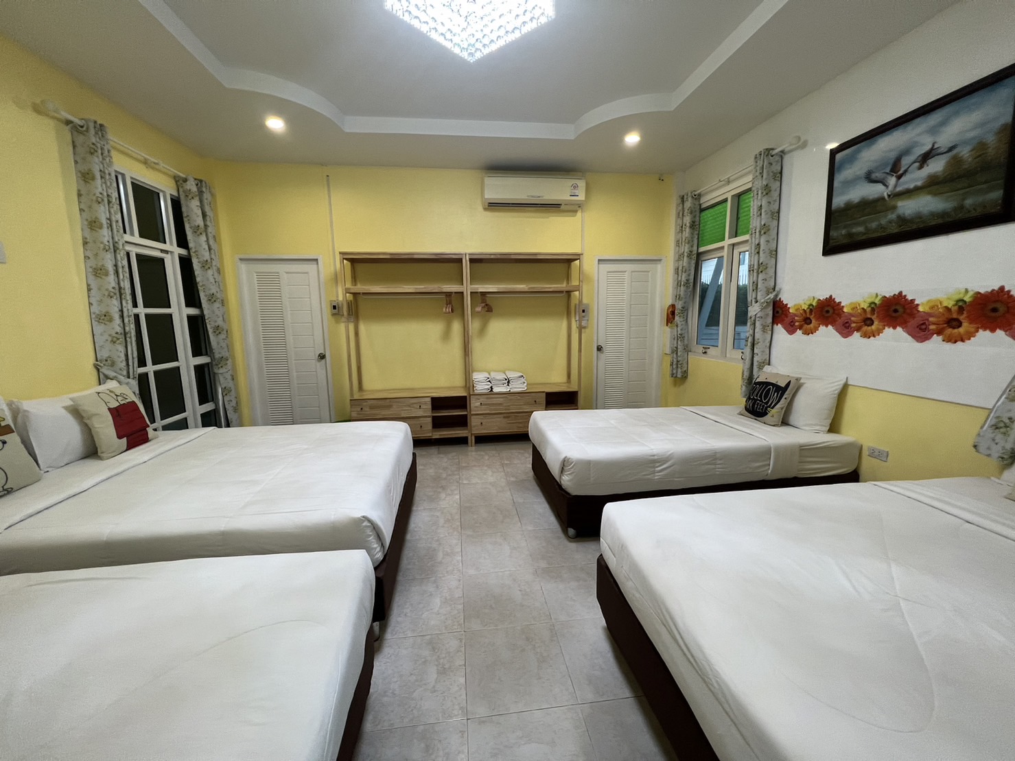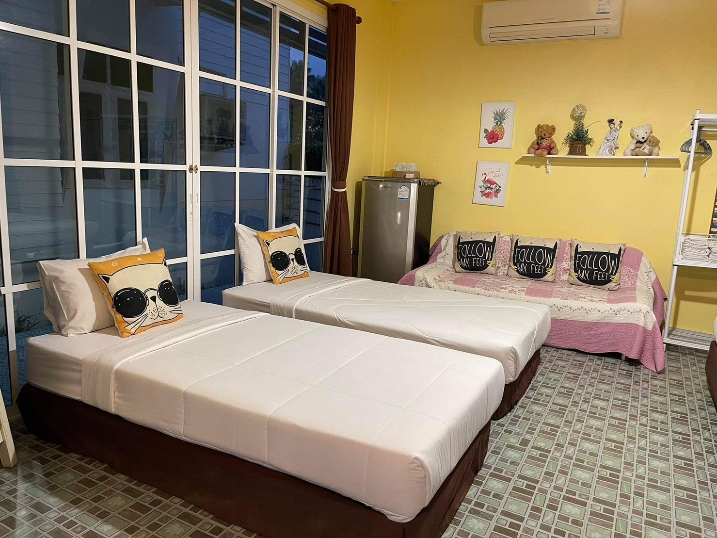 กรรณิการ์ บ้านพักขนาด 6 ท่านต่อ 1 หลัง ในราคา 1,500 - 2,000 บาท พร้อมกาแฟ โอวัลติน ขนมปัง ตอนเช้า บ้านพักห้องเตียงใหญ่ King bed 2 เตียง เตียงเดี่ยว Single bed 1 เตียงและ 1 ห้องโถง พร้อมด้วยเครื่องอำนวยความสะดวกครบครันภายในบ้านพัก เครื่องปรับอากาศ พัดลม เครื่องทำน้ำร้อน ตู้เย็น ทีวี LED จอแบน/เคเบิลทีวี ระเบียง น้ำดื่ม อินเทอร์เน็ตไร้สาย เจลอาบน้ำ สบู่